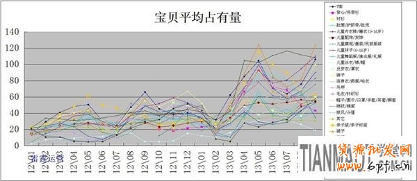 下面的這張圖片是一個行業(yè)中,一款高質(zhì)量寶貝能夠占有多少銷量,占的銷量越多,說明這個行業(yè)競爭越小,越小,說明競爭越大。發(fā)現(xiàn)套裝丶親子裝丶嬰兒禮盒丶T恤丶兒童襪子(0-16歲)丶肚圍/護臍帶/肚兜丶兒童內(nèi)衣褲/睡衣丶外套/夾克/大衣丶連身衣/爬服/哈衣丶褲子,這幾個競爭優(yōu)勢比較的大。