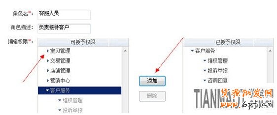 點(diǎn)擊“創(chuàng)建角色”,可以對(duì)需要?jiǎng)?chuàng)建的角色進(jìn)行分配權(quán)限,這里的權(quán)限分配完后是可以修改的。選中相應(yīng)的權(quán)限,點(diǎn)擊“添加”就可以。