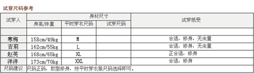 內頁在一些細節(jié)處理上應該還有一定的提升空間。例如:給出的試穿尺碼參考中,只有平時穿衣尺碼卻沒有試穿尺碼,這樣的參考等于沒有參考。