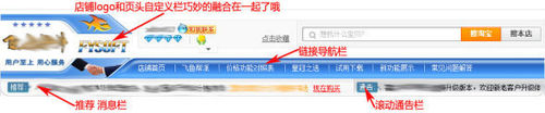 店招做好后,整個(gè)頁頭效果就出來了,發(fā)布出來看看效果哦,下面我將人店鋪的頁頭效果展示給大家看看。