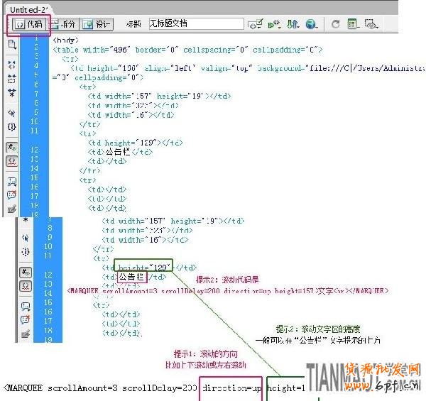 然后在相應的區(qū)域里寫入滾動的代碼,代碼如下圖所示: