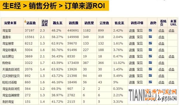 2、生E經(jīng):銷售分析-訂單來(lái)源ROI。此工具可以查看淘寶客的轉(zhuǎn)化率及用哪個(gè)淘客渠道成交的數(shù)據(jù),如果是通過(guò)淘寶客搜索成交的也會(huì)提供是用哪個(gè)詞成交的。