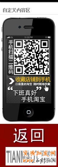 自定義區(qū)域:自定義區(qū)域可添加手機(jī)店鋪及收藏店鋪(格式為:收藏XXX:增加品牌曝光量)或者返回首頁(yè)丶頂部都可以,目的是讓流量在店鋪形成一個(gè)閉環(huán),盡量轉(zhuǎn)化。