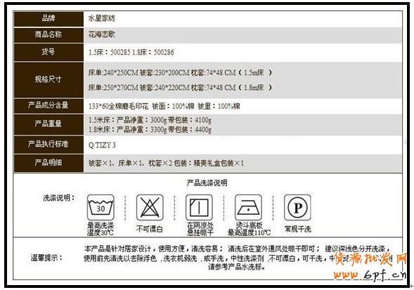 ③產(chǎn)品規(guī)格尺寸(參照格式:床單230*250CM 被套: 240*220CM)