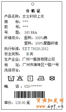 水洗標(biāo)即為縫在衣服上的耐久性標(biāo)簽,在產(chǎn)品使用過(guò)程中應(yīng)牢固地附著且內(nèi)容完好無(wú)缺,需包含的內(nèi)容如下: