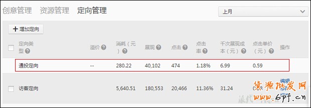 9、很多人老是看到通投,那通投是什么呢,就是資源位流量過(guò)剩而我們的計(jì)劃消耗不足時(shí)對(duì)全網(wǎng)人群的投放,也就是那個(gè)底價(jià)7元或1元等的投放,可以說(shuō)是垃圾流量 ,點(diǎn)擊率低,轉(zhuǎn)化基本沒(méi)有,我們要的是精準(zhǔn)流量。通投是在計(jì)劃管理>推廣單元管理>定向管理里面的通投定向這一行查看的,若此行有數(shù)據(jù)表明出現(xiàn)了通投,可點(diǎn)后面的報(bào)表查看通投的具體情況。