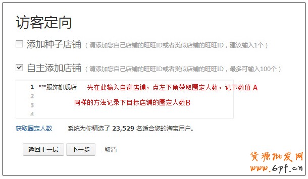 3、訪客定向是比較精準(zhǔn)的,它里面細(xì)分為二種,一個(gè)是種子店鋪定向,和興趣點(diǎn)差不多,系統(tǒng)根據(jù)你店鋪的風(fēng)格價(jià)位自動(dòng)為你匹配150家類似店鋪的客戶群;另一個(gè)是自主店鋪定向,只會(huì)圈定你所加入的店鋪的客戶群,流量非常精準(zhǔn),后文會(huì)詳細(xì)講到。