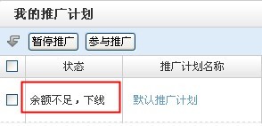 首先,請(qǐng)您進(jìn)入直通車(chē)后臺(tái)確認(rèn)推廣計(jì)劃的狀態(tài),正常應(yīng)該是“推廣中“;若計(jì)劃狀態(tài)為“暫?!?、“余額不足”或“不在投放時(shí)間內(nèi)”,則直通車(chē)上也會(huì)找不到您的寶貝;如圖所示:
