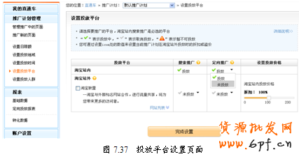 淘寶直通車目前投放平臺分為:淘寶站內(nèi)和淘寶站外,淘寶站內(nèi)指淘寶網(wǎng)投放,是必選的投放平臺。淘寶站外指跟淘寶網(wǎng)合作的推廣網(wǎng)站,在這里投放的廣告價格會低一些,但效果也差。一般推薦使用淘寶平臺就夠了。定向推廣是淘寶利用自己龐大的數(shù)據(jù)庫,通過多維度人群定向技術(shù),鎖定你的目標(biāo)客戶,并將你的推廣信息展現(xiàn)在目標(biāo)客戶瀏覽的網(wǎng)頁上。一般是展示在旺旺買家版每日焦點—熱賣、我的淘寶—已買到的寶貝、已買到的寶貝—物流詳情頁、收藏列表頁、淘寶資訊頁面等。這類流量轉(zhuǎn)化率比較低,一般不建議小賣家使用,如圖所示。