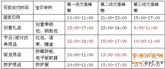 從以上表格可以看出,以上6個(gè)二級類目雖然都屬于居家日用一級類目,但是不同的二級類目,買家的購物成交時(shí)間會(huì)呈現(xiàn)出不一樣的結(jié)果,請關(guān)注上面表格中標(biāo)紅的時(shí)間段。