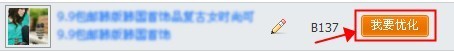 進(jìn)入寶貝優(yōu)化頁面后,點(diǎn)擊某寶貝右邊的【我要優(yōu)化】按鈕,如下圖: