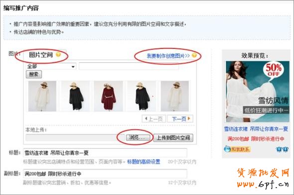 您可以選擇圖片空間里的創(chuàng)意素材,也可以本地上傳創(chuàng)意圖片,或者進(jìn)入廣告牌在線設(shè)計(jì)平臺(tái)(bannermaker)挑選模板創(chuàng)建創(chuàng)意圖片;填完完畢后,你可以設(shè)置推廣標(biāo)題;