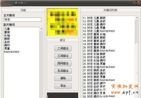 這個(gè)是小工具的基本操作頁面,主關(guān)鍵詞就是圖表中的中心關(guān)鍵詞,副關(guān)鍵詞就是必備關(guān)鍵詞,這里需要注意的就是男童和PAW 這兩個(gè)詞,都是需要分兩次使用的,即一共也有四種搭配,分別是男童+PAW、男童+PAW IN PAW、男+PAW、男+PAW IN PAW,至于詞語組合的個(gè)數(shù),建議不要超過四詞組合,有例如PAW IN PAW這種很長的品牌名字的話,建議就不要超過三詞組合!