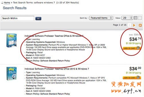 新蛋就不錯(cuò),有很好的軟件產(chǎn)品展示方式——包含諸多瀏覽要點(diǎn):支持的操作系統(tǒng)O/S、系統(tǒng)要求、退貨制度,附帶“ADD TO CART”添加到購(gòu)物車按鈕與價(jià)格/運(yùn)費(fèi)等信息。