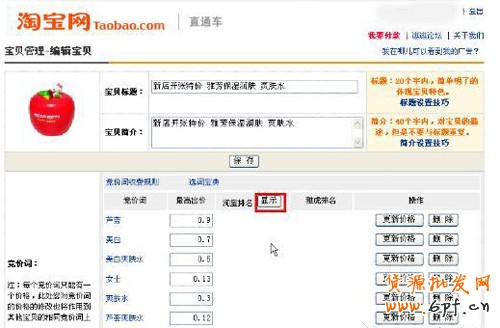 本文來源: 淘寶直通車123:如何查詢網(wǎng)店競價(jià)詞排名