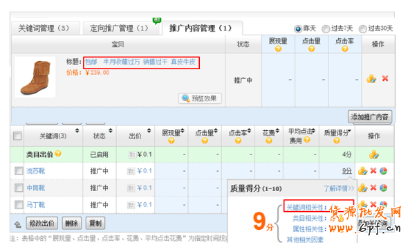 當(dāng)前位置: 貨源批發(fā)網(wǎng) » 網(wǎng)商學(xué)院 » 網(wǎng)店推廣 » 淘寶推廣 » 直通車 » 提高關(guān)鍵詞質(zhì)量得分 讓你開穩(wěn)直通車