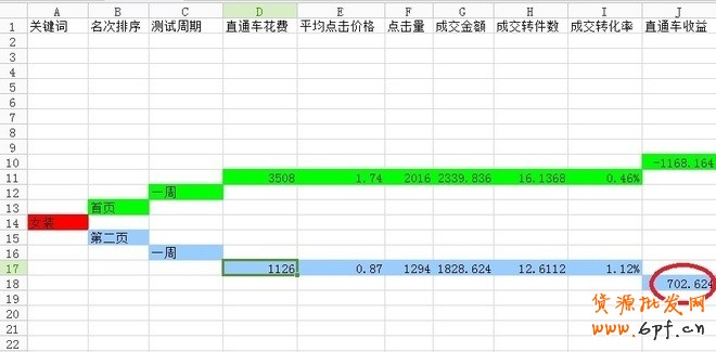 通過測試結(jié)果可以直接計算出直通車的收益。