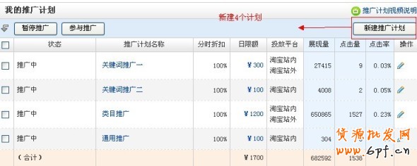 新增推廣計劃:在我的推廣計劃的右下邊上,點擊新增推廣計劃,建立4個推廣計劃。依次在每個計劃里面都點擊推廣新的寶貝,把這個新品增加上去。這樣這個單品就可以增加800個推廣關鍵詞,一個計劃里面一個單品最多只可以增加200個。