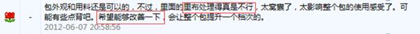 包的氣味太重:客戶收到貨后,反應包的味道比較重,第一個客戶雖然給了好評,但是還是會有不舒服的感覺,而另外一個客戶因此給了中評。