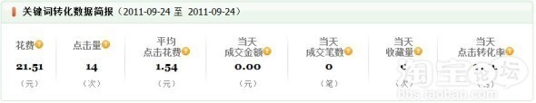 第二天的數(shù)據(jù)是這樣的,一看,有一個轉(zhuǎn)化了,轉(zhuǎn)化率還不低,擦,但是,成交額>花費,坑爹啊,這肯定是虧的,找出原因原來是我的定向出價太高了,把定向的出價調(diào)下來,繼續(xù)提高關(guān)鍵詞的出價。