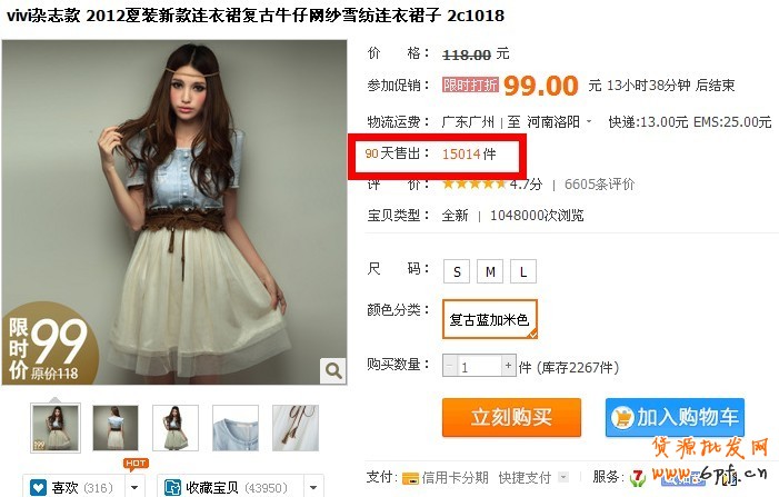 你就會(huì)發(fā)現(xiàn)寶貝頁(yè)面變成了最近90天銷量,截圖大家看一下: