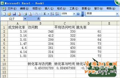 我們必須列出可能影響轉(zhuǎn)化率的所有因眾,通過Correl函數(shù)計算他們之間的相關(guān)系數(shù).從而找到主要原因。