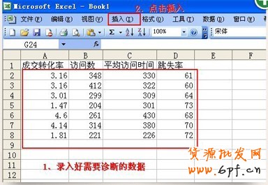 將這些值整理好,填寫到exce!里,本文中的excel是2003版,如果你的excel是 2007版.選擇插入函數(shù)即可。