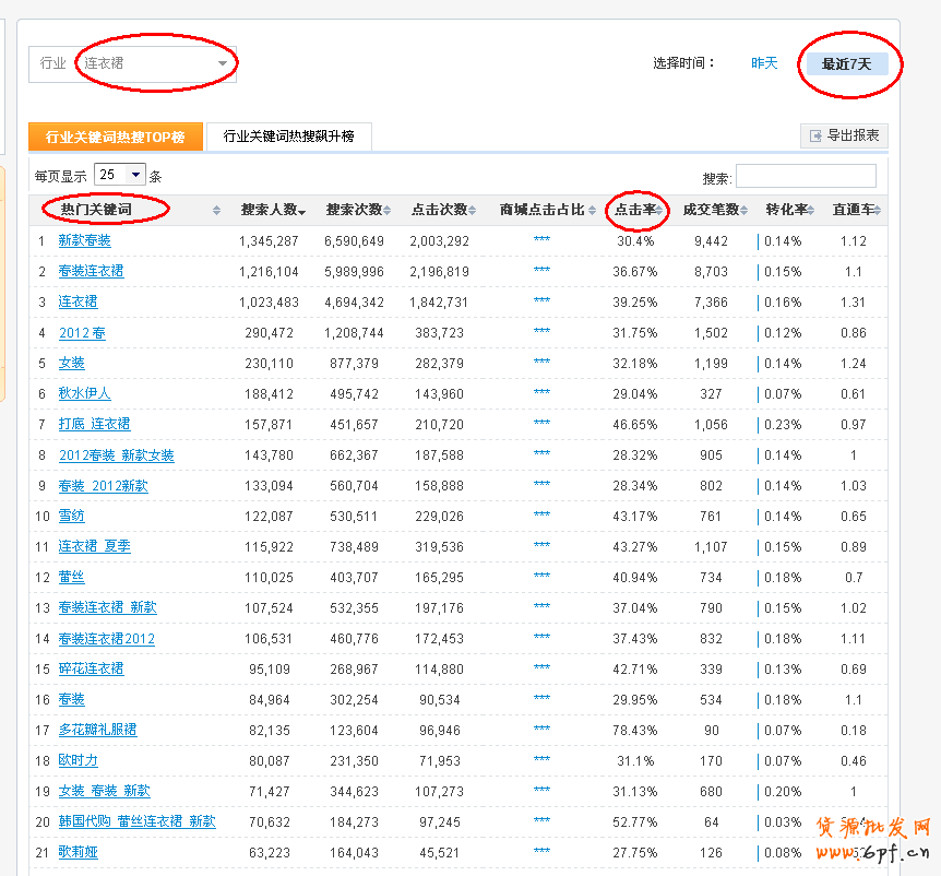 使用數(shù)據(jù)模仿淘詞來(lái)選,最近7天的,因?yàn)?0天的數(shù)據(jù)變化比較大,數(shù)據(jù)的精準(zhǔn)度就不高了,所以選最近7天的。我的找法是搜索人數(shù)高的 點(diǎn)擊率高的 再?gòu)睦锩嫣暨x適合自己寶貝的詞,做成一個(gè)表格進(jìn)行分析。