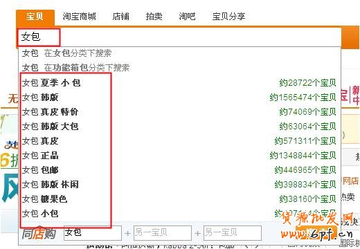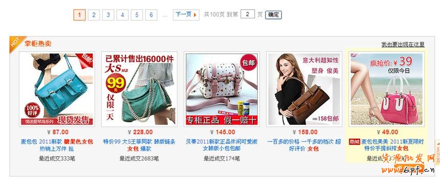 當(dāng)我輸入“糖果色 女包”第一頁(yè)最下面的位置出現(xiàn)這樣五款包包。