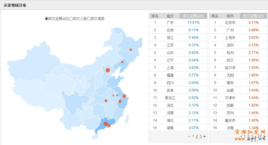 1、從買家角度分析,以此產(chǎn)品為例,從數(shù)據(jù)魔方分析得出,成交占比主要分布于沿海城市及個別中部發(fā)達城市,那么我們在設(shè)置鉆展投放地域時,需要屏蔽西北西南等西部地區(qū)。