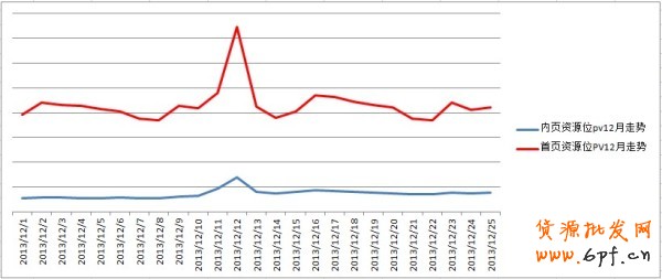 紅色為首頁資源位流量,藍色為內(nèi)頁重點資源位流量 雙十二過后 流量完全回歸正常 一點沒有下降趨勢
