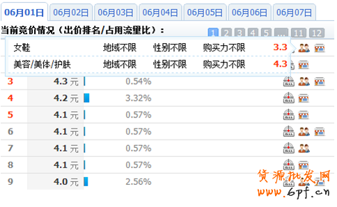 這個(gè)位置,6月1日,商家出價(jià)到第一名,美容美體定向,出價(jià)到4塊3,達(dá)到美容類目平均PPC的43倍。