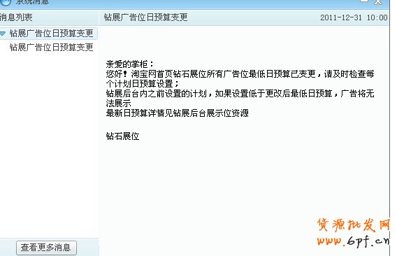 您好!淘寶網首頁鉆石展位所有廣告位最低日預算已變更,請及時檢查每個計劃日預算設置;