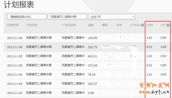 兩個(gè)資源位的計(jì)劃報(bào)表,cpm和cpc都是眼前一亮,5塊以內(nèi)的cpm,不到1塊的cpc,這根站內(nèi)的效果基本沒有差異