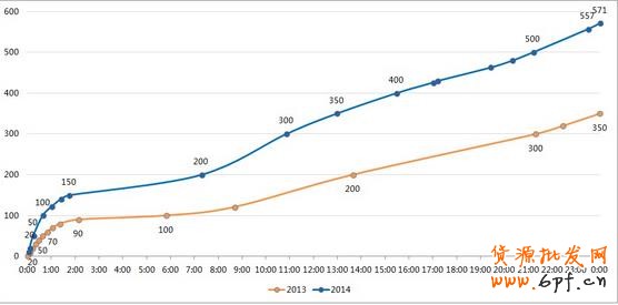 2、2014年第三季度阿里日均交易額為60.4億,571億是其9.5倍,就是相當于9.5天的銷量。而雙十一前后7天的交易量會有不少轉(zhuǎn)移到11.11這條來消費,這部分能占多少?我們的銷售實際提升幫助有多大?