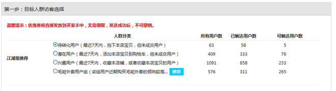 1、通過江湖策的精準營銷發(fā)送優(yōu)惠券,7天一個周期。
