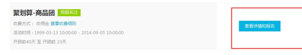 在“活動(dòng)詳情”中你可以了解:活動(dòng)介紹、收費(fèi)方案、保證金規(guī)則、報(bào)名要求、坑位規(guī)劃,同時(shí)點(diǎn)擊“我要報(bào)名”進(jìn)行報(bào)名。