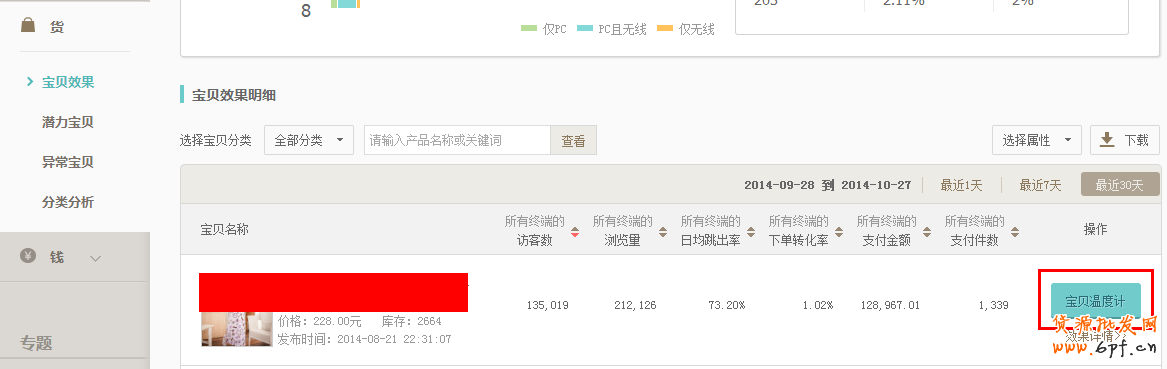 2、進入生意參謀,查看貨——寶貝效果——寶貝效果明細——寶貝溫度計