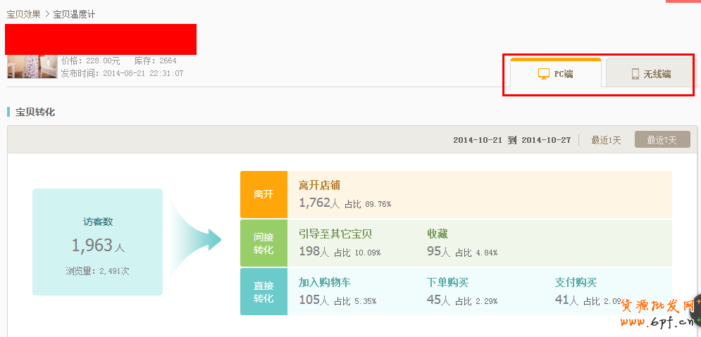 通過寶貝效果可查看到寶貝的引流能力(流向指標)、間接轉化能力(收藏、加購、下單)、直接轉化能力(支付)選擇高轉化、低跳失的商品作為重點推廣寶貝?,F在無線端發(fā)展這么快,想知道重點寶貝在無線端是不是也一定的給力呢?請看: