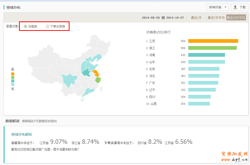 可通過生意參謀中的訪客分析,找出流量高和轉化率高的地區(qū),并且在這些地區(qū)中加大投放力度,實現更加精準投放,使得推廣效果更佳。