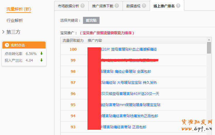 現在的第三階段,如果排除個性化影響,就和第一階段一樣了,1-100的流量獲取能力值,對應前100名的 寶貝,流量獲取能力值100對應第1個寶貝,流量獲取能力值1對應第100個寶貝,排名計算倒過來算就可以了。流量解析-線上推廣排名,相對精準些。