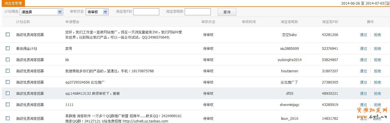 5.設(shè)置一個(gè)淘客手動(dòng)審核計(jì)劃。可以設(shè)置一個(gè)高級(jí)淘客計(jì)劃,申請(qǐng)這個(gè)計(jì)劃的淘客可以得到比通用計(jì)劃更高的傭金,但是公告上提前寫清楚,申請(qǐng)這個(gè)計(jì)劃的驗(yàn)證信息必須寫上自己的QQ或者電話,否則一律拒絕,等你審核的時(shí)候就能輕松獲得他們的聯(lián)系方式啦!如下圖: