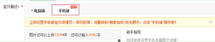手機(jī)內(nèi)頁詳情裝修:在PC端后臺(tái)請看手機(jī)端,注意紅色字體,設(shè)置手機(jī)版寶貝詳情。