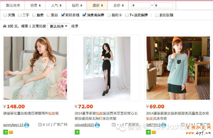 在這里我們可以看到默認(rèn)的排序不是銷量,不是人氣,也不是默認(rèn)綜合排序,而且要求旺旺在線和消保,最關(guān)鍵的是你的標(biāo)題里必須出現(xiàn)“仙女”字樣,因此我們要針對(duì)淘寶抓取的特征,對(duì)自己產(chǎn)品的調(diào)整,就有比較大的機(jī)會(huì)獲得優(yōu)先的展現(xiàn)。