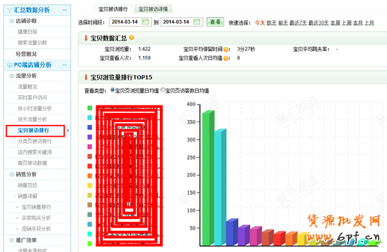 在“寶貝銷售排行”中,可以看到在不同時間段的寶貝數(shù)據(jù)匯總及排行,讓你首先對寶貝信息有個整體的了解。在最近7天被訪問寶貝TOP10就很明確的告訴我們,最有潛力的寶貝就在被訪排名的前幾,占全部點擊量的百分之十幾二十幾甚至更多。當(dāng)選定了潛力寶貝,然后再加以包裝推廣,寶貝的被訪量就更高,名氣就更大,自然就很好的帶來更多的流量,也帶來了銷量。