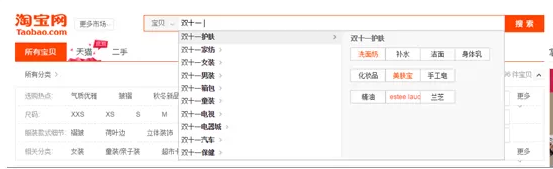 在淘寶搜索框輸入 "雙十一" 或者 "1111",就可以從下拉框和"你是不是想找"中獲得更多雙十一相關(guān)的直通車關(guān)鍵詞。