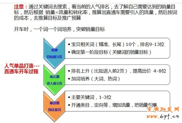 這根本就是誤人子弟,什么都說了,最關(guān)鍵的地方?jīng)]說,那么最關(guān)鍵的地方是什么呢?最關(guān)鍵的就是我上面所說的認(rèn)清楚直通車的本質(zhì)是什么?真正的車是怎么開的。用直通車推爆款絕對不是簡簡單單的在直通車?yán)锩嬖O(shè)置幾個關(guān)鍵詞,沖上一堆錢,就開始燒。而是有計劃,有目標(biāo),有預(yù)算的精準(zhǔn)化流程,推爆款就是一個精準(zhǔn)化的流程。