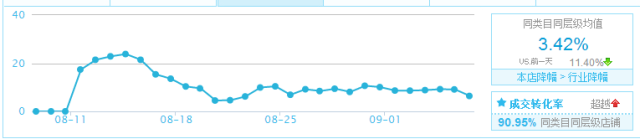 如果沒有作弊,那轉(zhuǎn)化越高越好,最好單品能有10%的轉(zhuǎn)化率,這樣權(quán)重高。我個(gè)人操作的測試結(jié)果是大于1.2倍以上,也就是高于同行業(yè)同水平的20%以上。