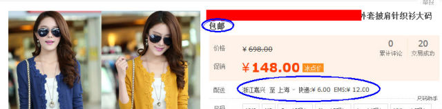 4)價(jià)格郵費(fèi)不符,如下圖,標(biāo)題打著包郵,但實(shí)際不包郵。