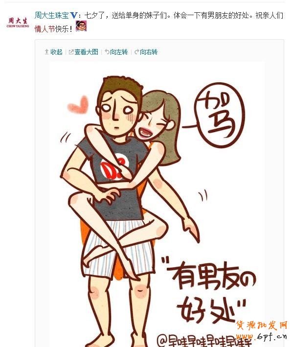 珠寶是情人節(jié)禮物的不二之選,然而珠寶品牌們在社交營銷上還是有些“先天不足”。周大生的出招讓人眼前一亮,“體會下有男朋友的好處”——有馬騎、有懷抱、有樂子……自然也少不了鉆戒哦!單身的妹子們,是不是有些羨慕嫉妒恨了?